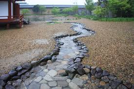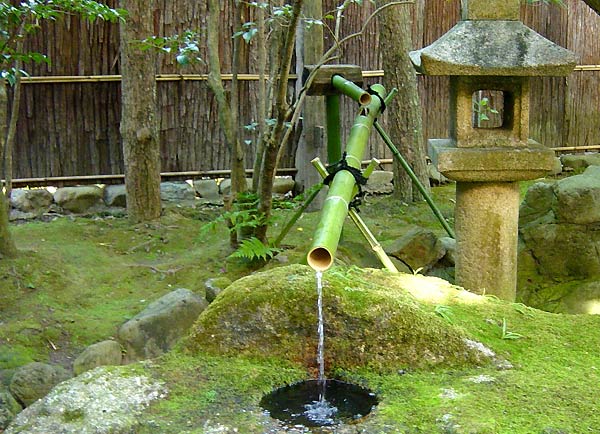 自然の美しさを愛でるとともに、京都の暑さをしのぐという庭園設計に基づいたちいさな流れ。